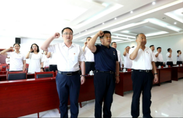 活动在雄壮的国歌声中拉开帷幕,全体党员面向党旗,举起右手,庄严宣誓。